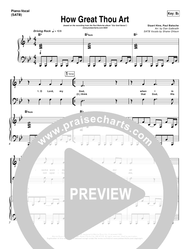Download the Orchestration for How Great Thou Art by Paul Baloche, from the album Our God Saves. This song was arranged by Daniel Galbraith in the key of A, Ab, Bb, C, G.