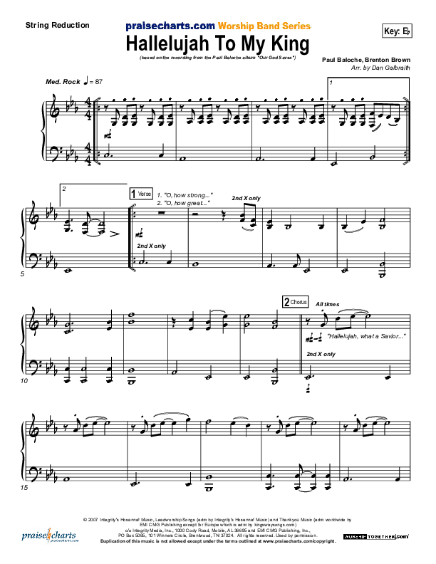 Download the Orchestration for Hallelujah To My King by Paul Baloche, from the album Our God Saves. This song was arranged by Daniel Galbraith in the key of Eb, F.
