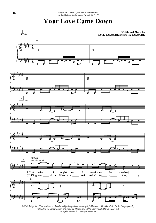 Download the sheet music for Your Love Came Down by Paul Baloche, from the album Our God Saves. This song was arranged by Integrity Music in the key of E.