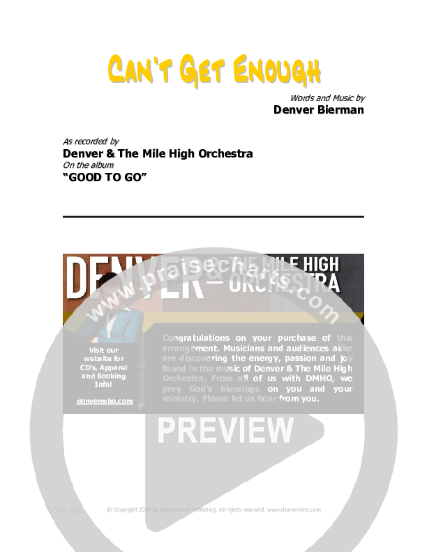 Download the Orchestration for Can't Get Enough by Denver Bierman, from the album Good To Go. This song was arranged by Denver Bierman in the key of F.