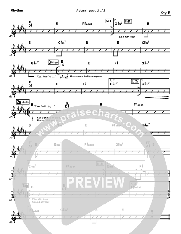 Download the Rhythm Chart for Adonai by Hillsong Worship, from the album Mighty To Save. This song was arranged by David Shipps in the key of B, Bb.