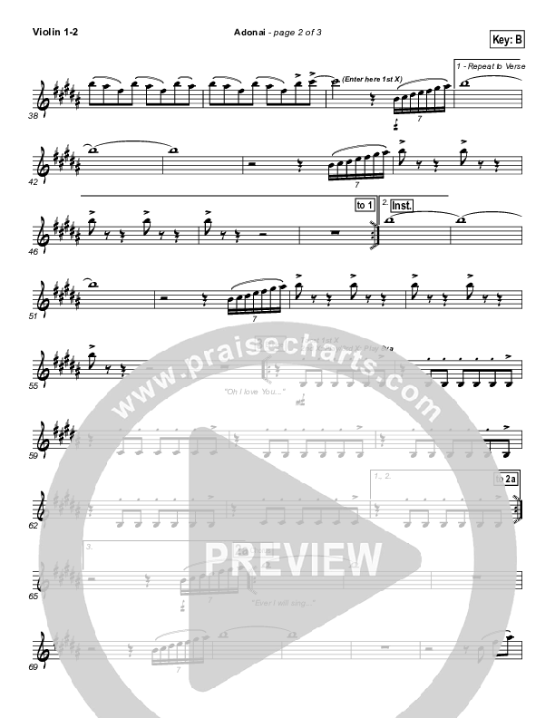 Download the Violin sheet music for Adonai by Hillsong Worship, from the album Mighty To Save. This song was arranged by David Shipps in the key of B, Bb.