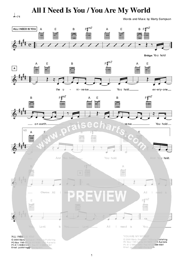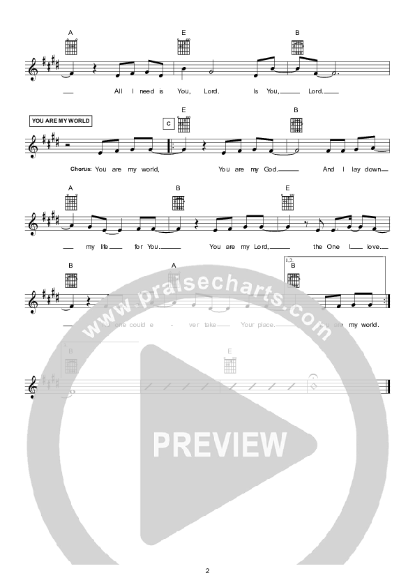 Download the sheet music for All I Need Is You/You Are My World by Hillsong Kids, from the album Super Strong God. This song was arranged by Hillsong Music in the key of E.