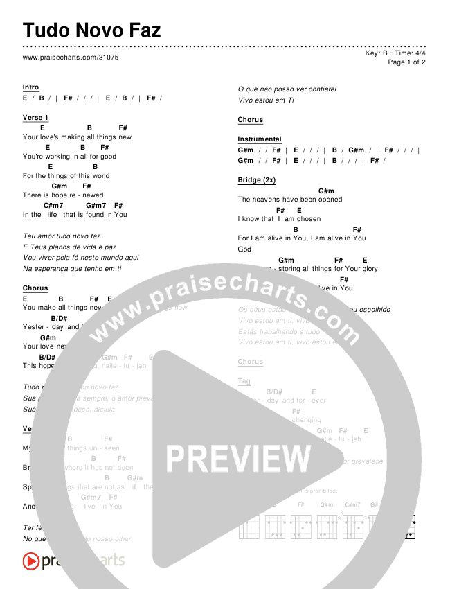 Download the PDF Chord Charts for Tudo Novo Faz, from the album Worship Songs In Portuguese.
