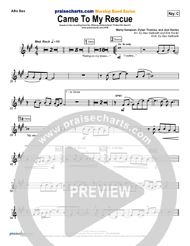 Download the AltoSax sheet music for Came To My Rescue by Hillsong UNITED, from the album United We Stand. This song was arranged by Daniel Galbraith / Erik Foster in the key of Bb, C.