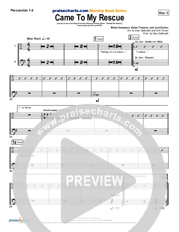Download the Orchestration for Came To My Rescue by Hillsong UNITED, from the album United We Stand. This song was arranged by Daniel Galbraith / Erik Foster in the key of Bb, C.