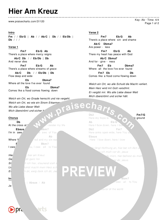 Download the PDF Chord Charts for Hier Am Kreuz (At The Cross (Love Ran Red)), from the album Deutsch Lobgesänge.