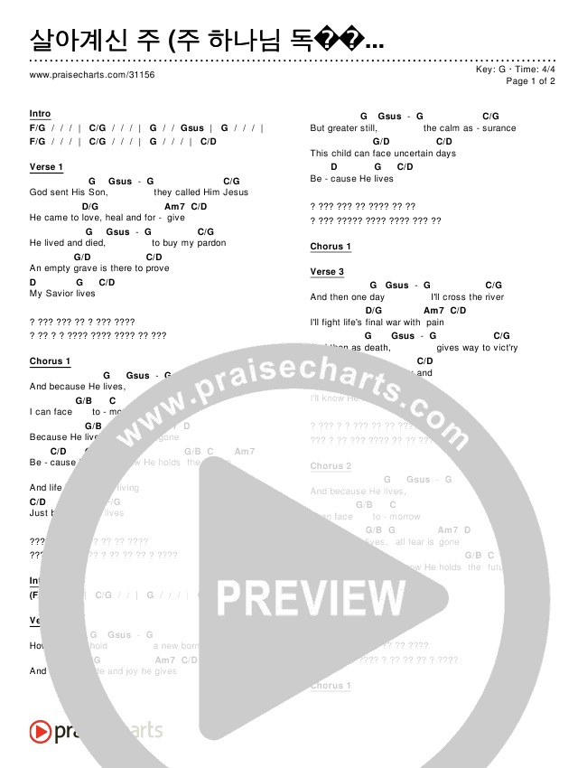 Download the PDF Chord Charts for 살아계신 주 (주 하나님 독생자 예수), from the album Worship Songs In Korean.