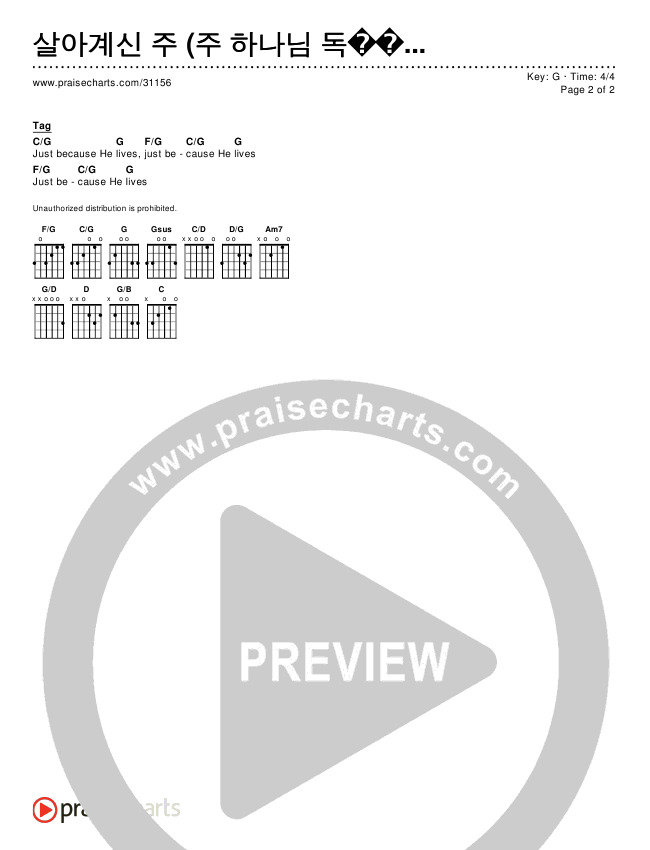 살아계신 주 (주 하나님 독생자 예수) Chords PDF