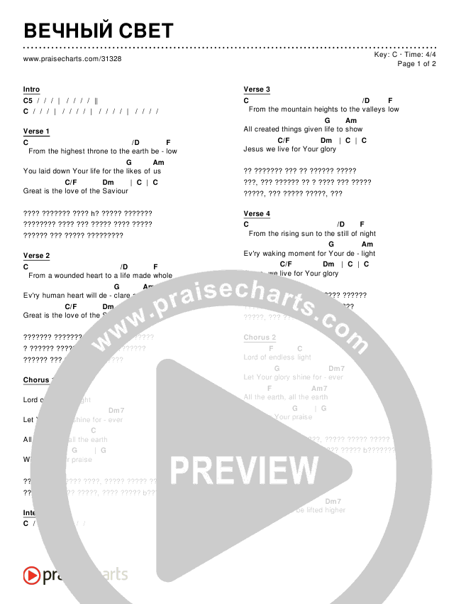 Download the PDF Chord Charts for ВЕЧНЫЙ СВЕТ, from the album Worship Songs In Russian.