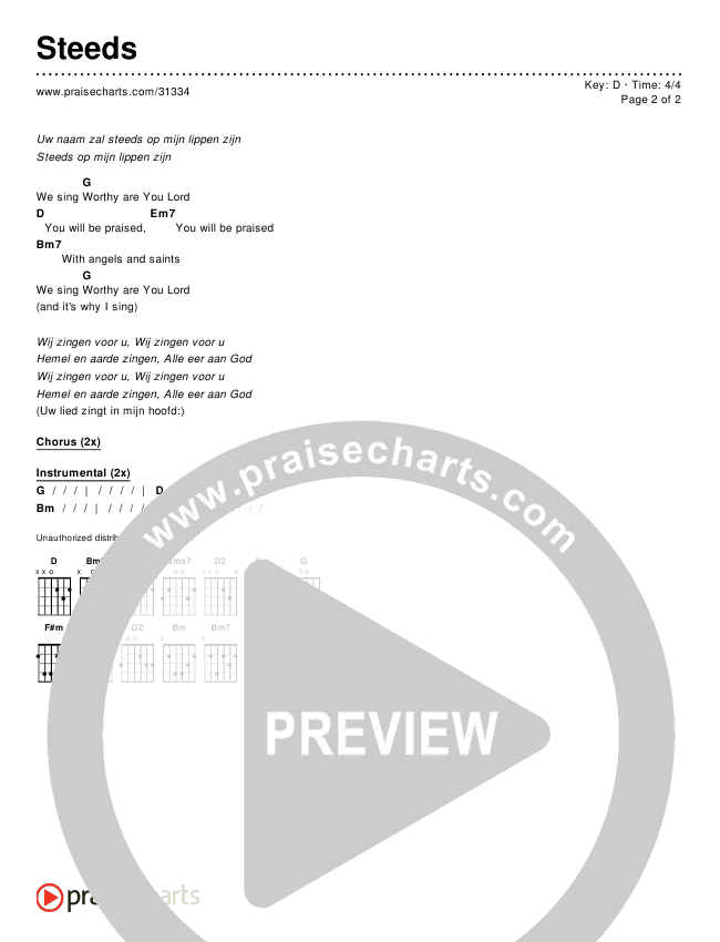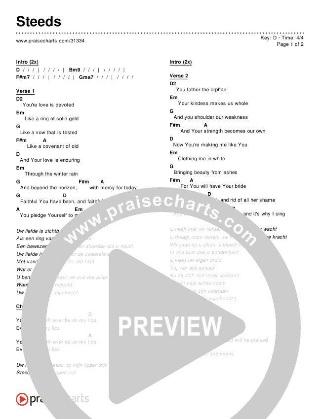 Download the PDF Chord Charts for Steeds, from the album Worship Songs In Dutch.