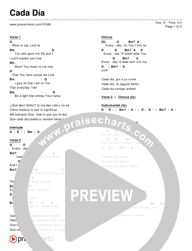 Download the PDF Chord Charts for Cada Día, from the album Canciones de Adoración Español.
