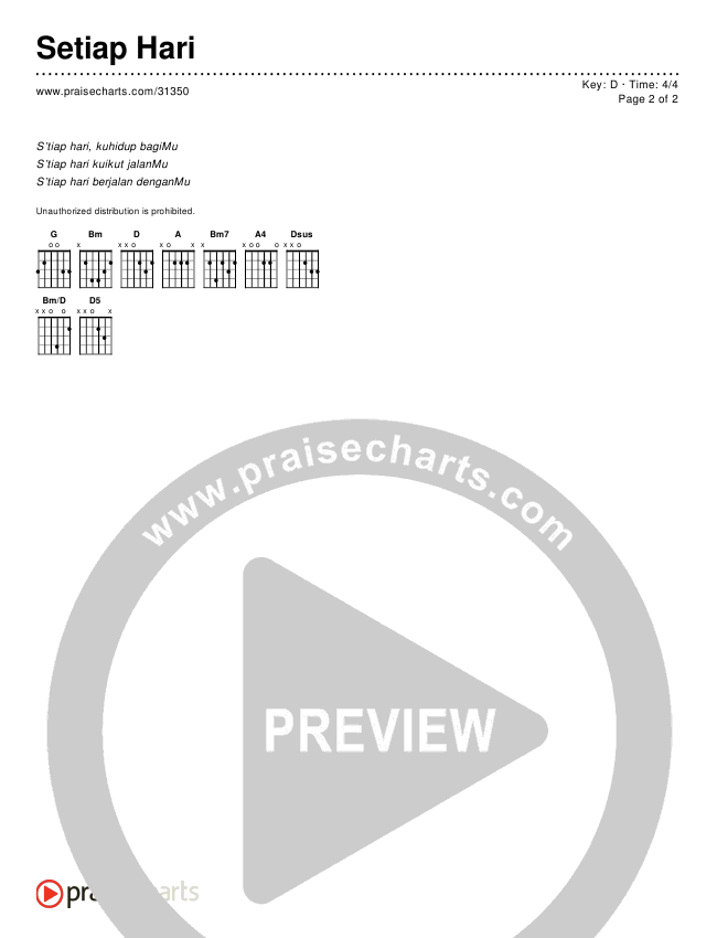 Download the PDF Chord Charts for Setiap Hari, from the album Worship Songs In Indonesian.