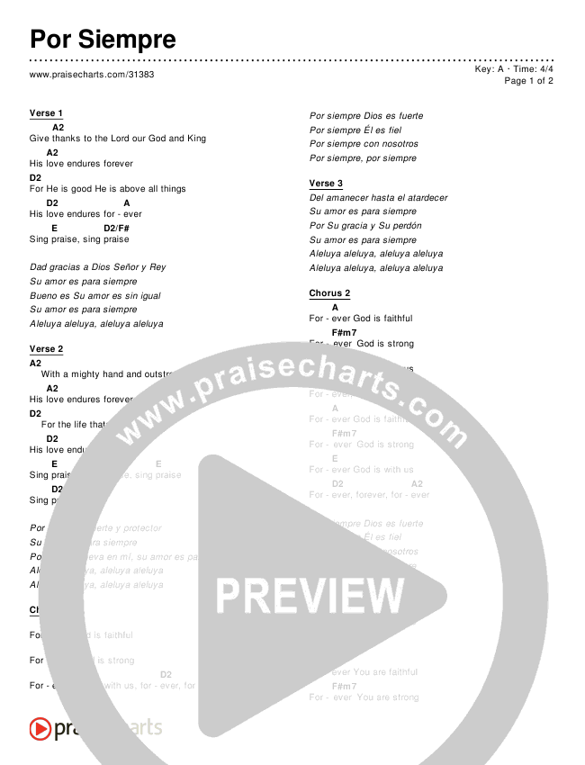 Download the PDF Chord Charts for Por Siempre (Simplified), from the album Canciones de Adoración Simplificadas en Español (Simplified .