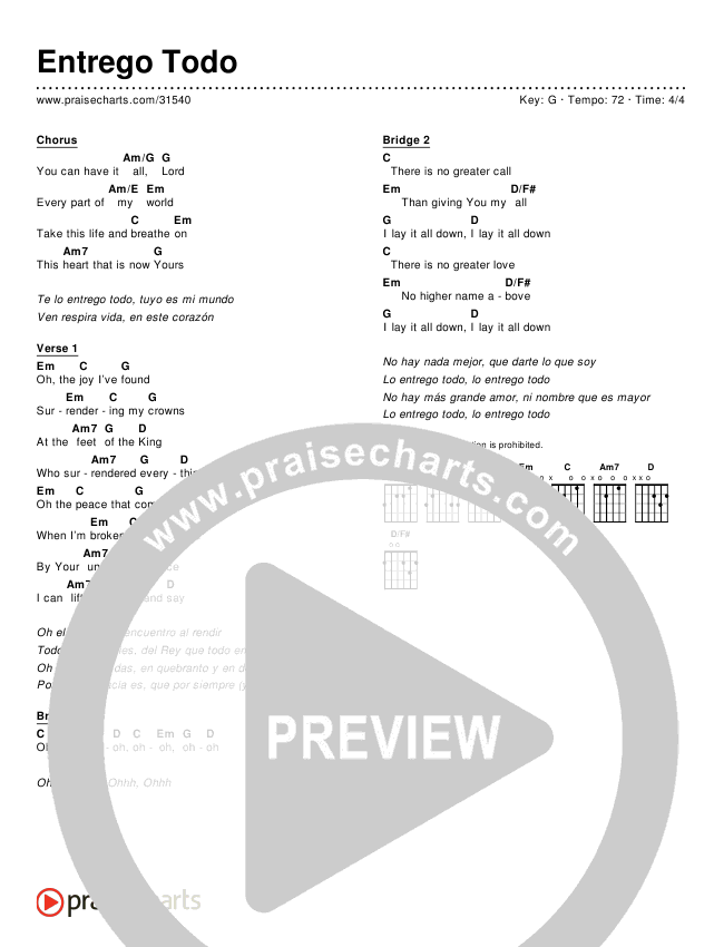 Download the PDF Chord Charts for Entrego Todo (Have It All) (Simplified), from the album Canciones de Adoración Simplificadas en Español (Simplified .