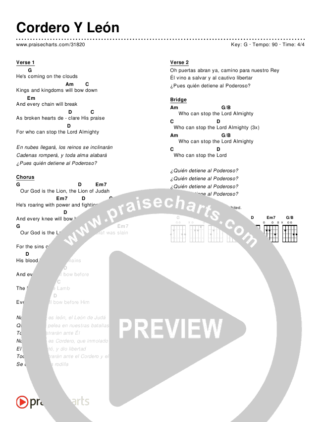 Download the PDF Chord Charts for Cordero Y León (Lion And The Lamb) (Simplified), from the album Canciones de Adoración Simplificadas en Español (Simplified .
