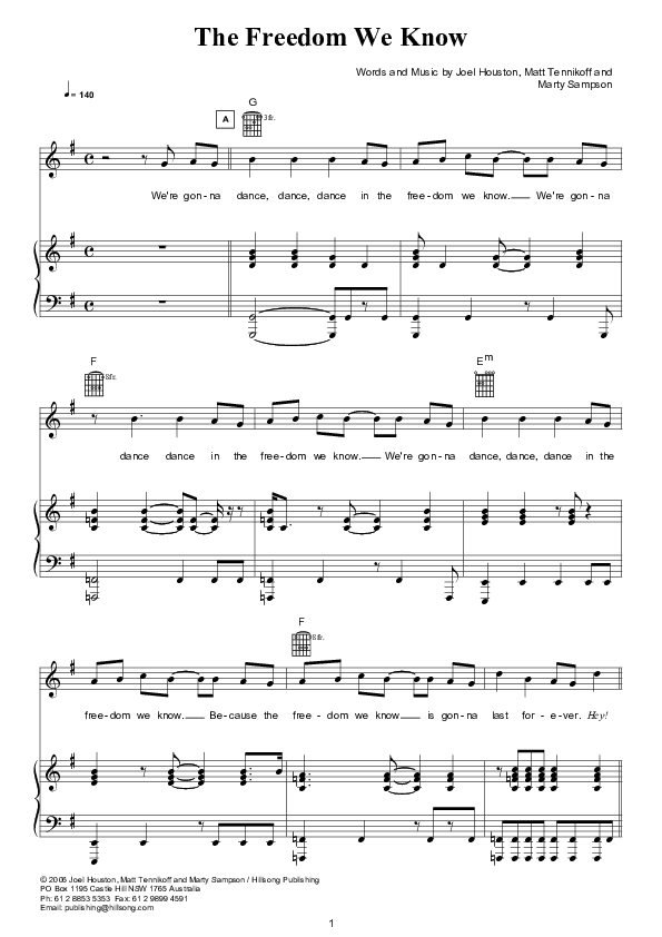 Download the Orchestration for The Freedom We Know (Instrumental) by Hillsong Worship, from the album Mighty To Save. This song was arranged by Hillsong Charts in the key of G.