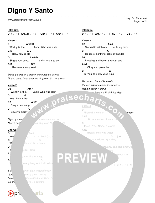 Download the PDF Chord Charts for Digno Y Santo (Revelation Song), from the album Canciones de Adoración Español.