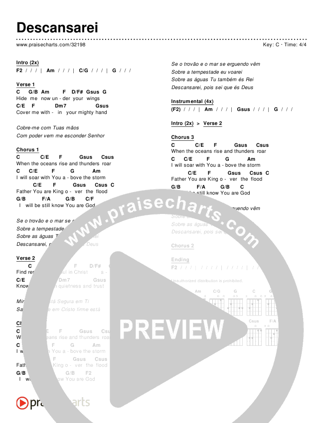 Download the PDF Chord Charts for Descansarei, from the album Worship Songs In Portuguese.