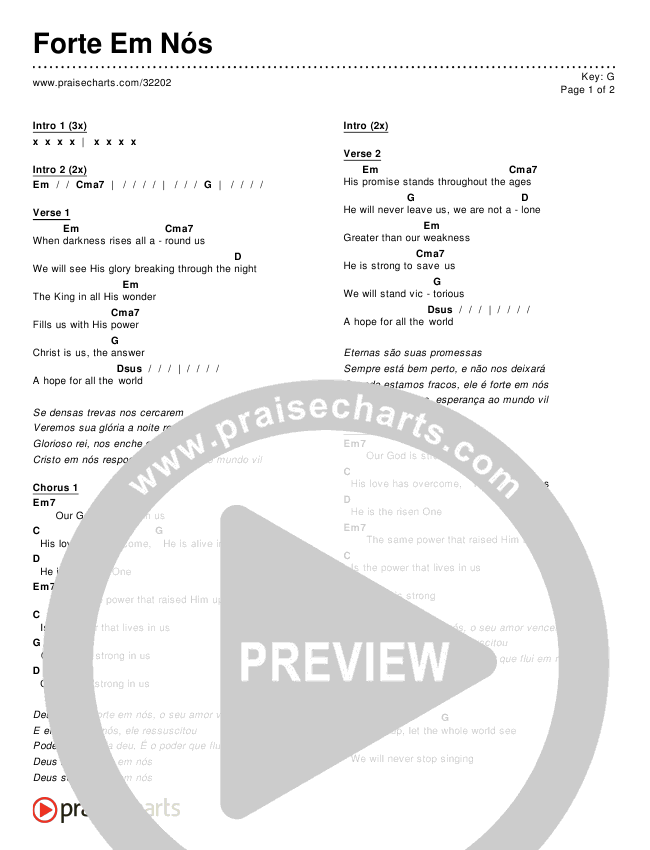 Download the PDF Chord Charts for Forte Em Nós, from the album Worship Songs In Portuguese.