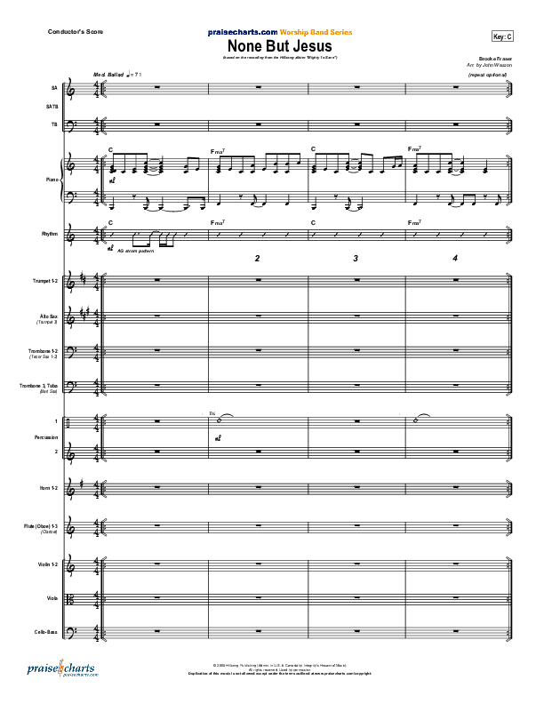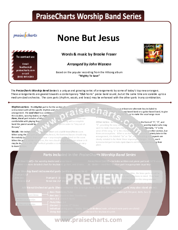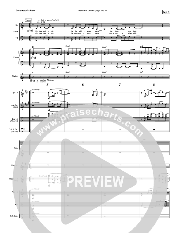 Download the Orchestration for None But Jesus by Hillsong Worship, from the album Mighty To Save. This song was arranged by John Wasson in the key of C, D.