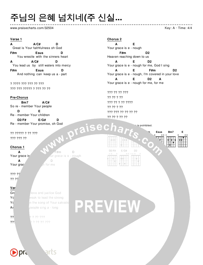 주님의 은혜 넘치네(주 신실하심 놀라워) (Your Grace Is Enough) Chords PDF