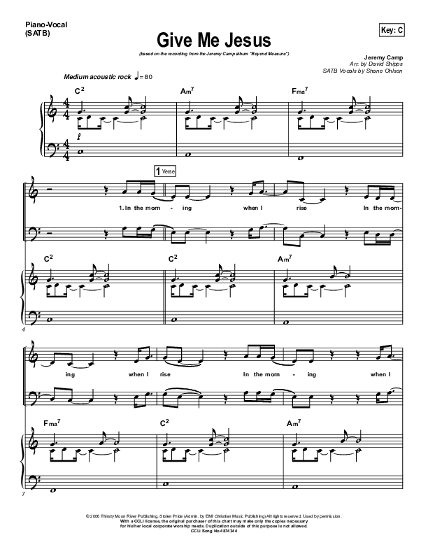Give Me Jesus Piano/Vocal (SATB) (Jeremy Camp)