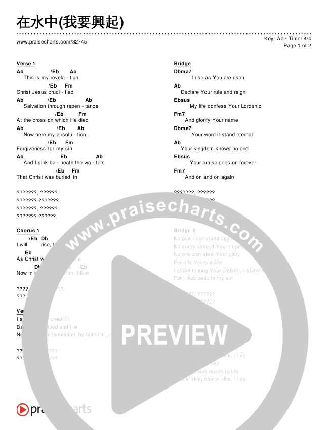 Download the PDF Chord Charts for 在水中(我要興起) (Simplified), from the album Simplified Worship Songs In Traditional Chinese.