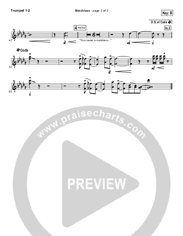 Download the trumpet sheet music for Matchless by Aaron Shust, from the album Anything Worth Saying. This song was arranged by Keith Everette Smith in the key of B, Bb.