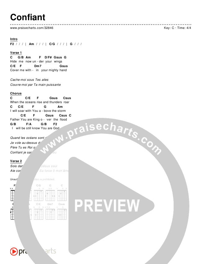 Download the PDF Chord Charts for Confiant (Still) (Simplified), from the album Simplified Worship Songs In French.