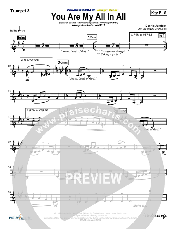 You Are My All In All Trumpet Sheet Music PDF (Dennis Jernigan)