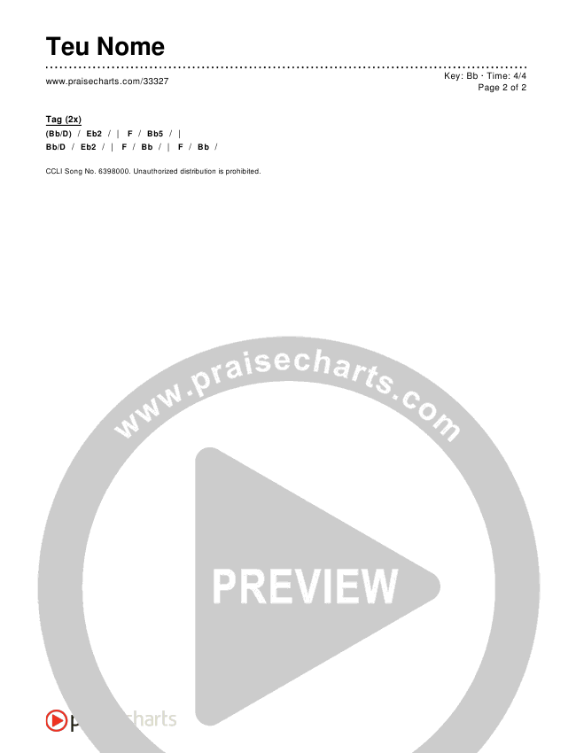 Download the PDF Chord Charts for Teu Nome, from the album Worship Songs In Portuguese.