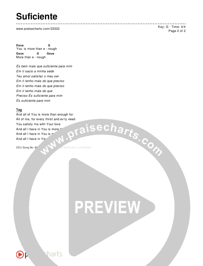 Download the PDF Chord Charts for Suficiente, from the album Worship Songs In Portuguese.