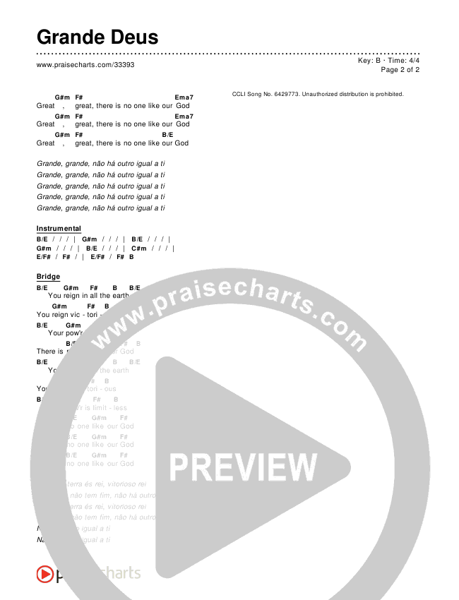 Download the PDF Chord Charts for Grande Deus, from the album Worship Songs In Portuguese.