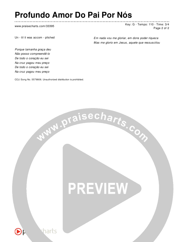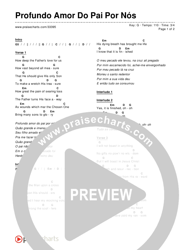 Download the PDF Chord Charts for Profundo Amor Do Pai Por Nós, from the album Worship Songs In Portuguese.
