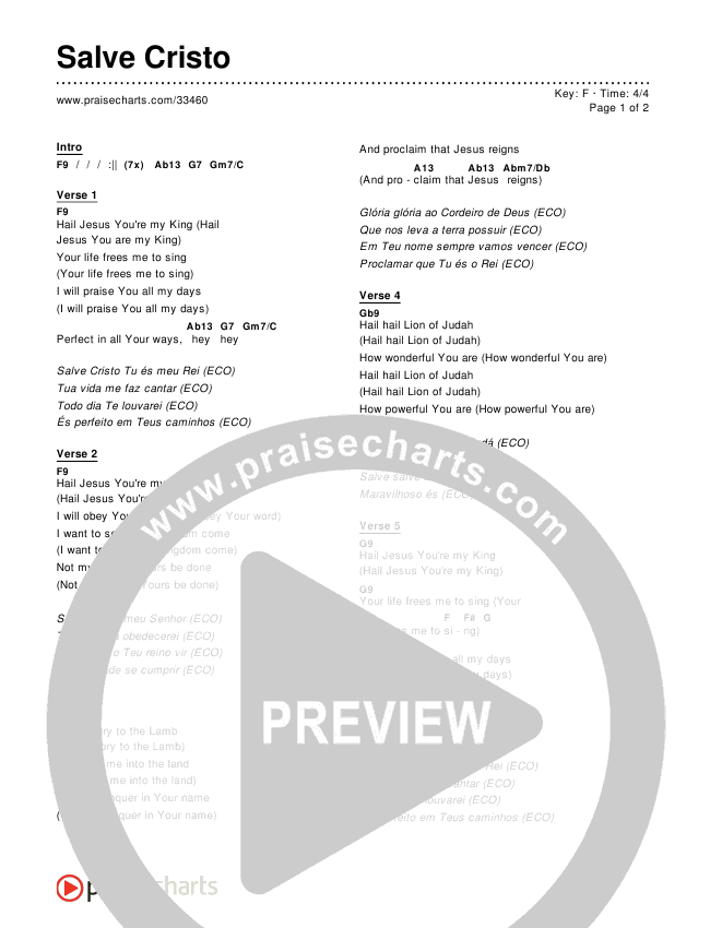 Download the PDF Chord Charts for Salve Cristo, from the album Worship Songs In Portuguese.
