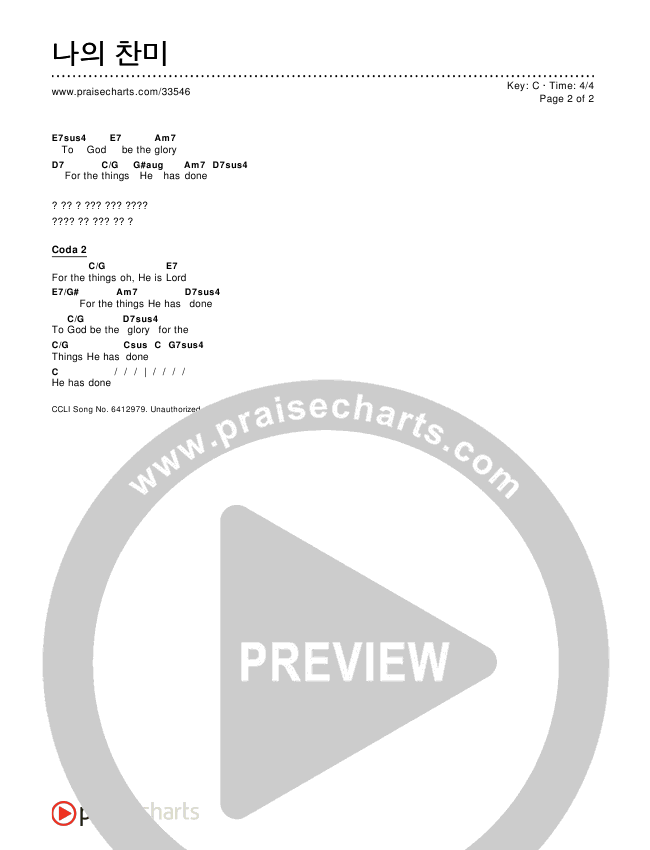 나의 찬미 Chords PDF