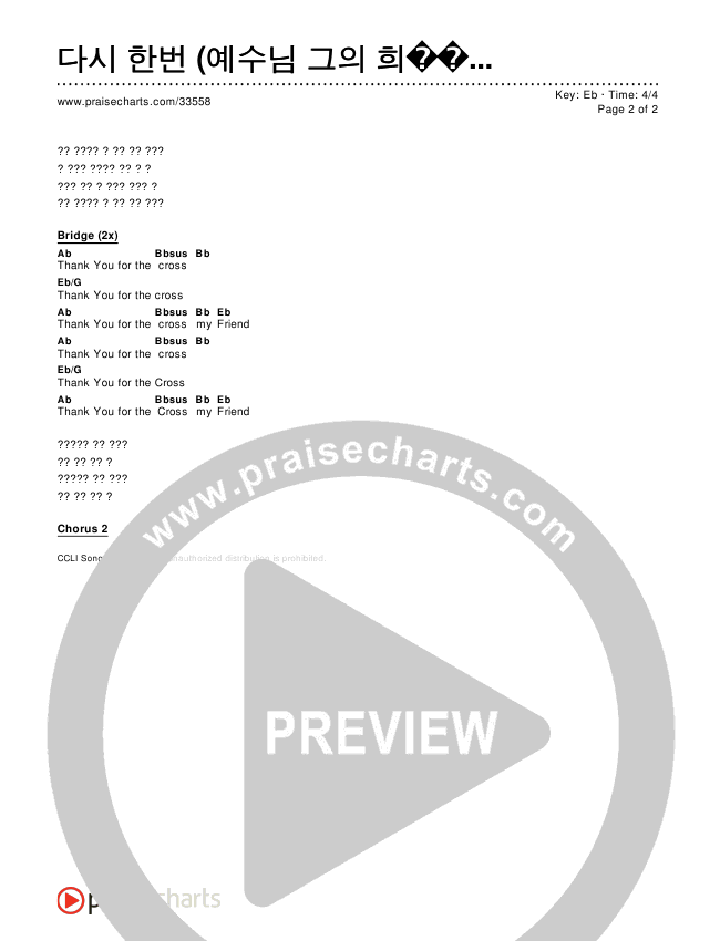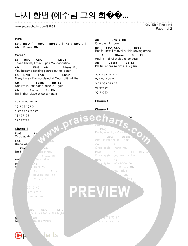 Download the PDF Chord Charts for 다시 한번 (예수님 그의 희생 기억할 때), from the album Worship Songs In Korean.