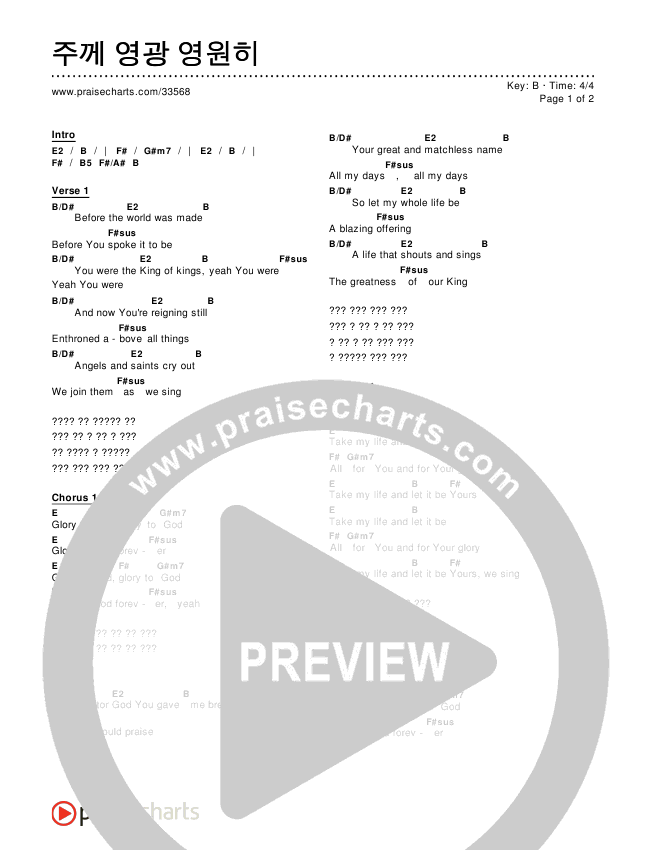 Download the PDF Chord Charts for 주께 영광 영원히, from the album Worship Songs In Korean.
