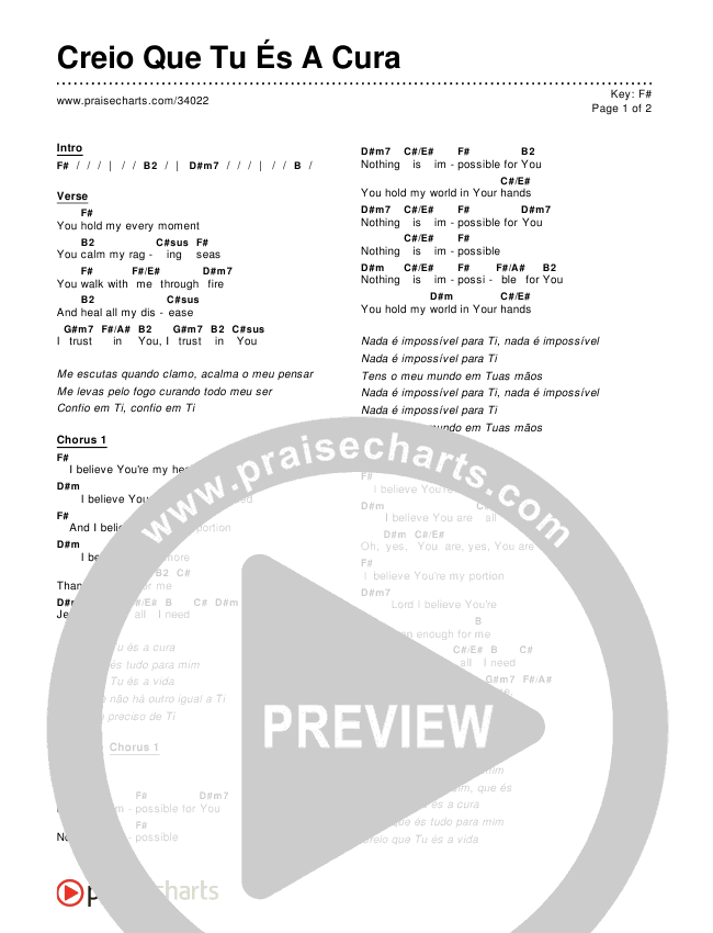 Creio Que Tu És A Cura Chords PDF