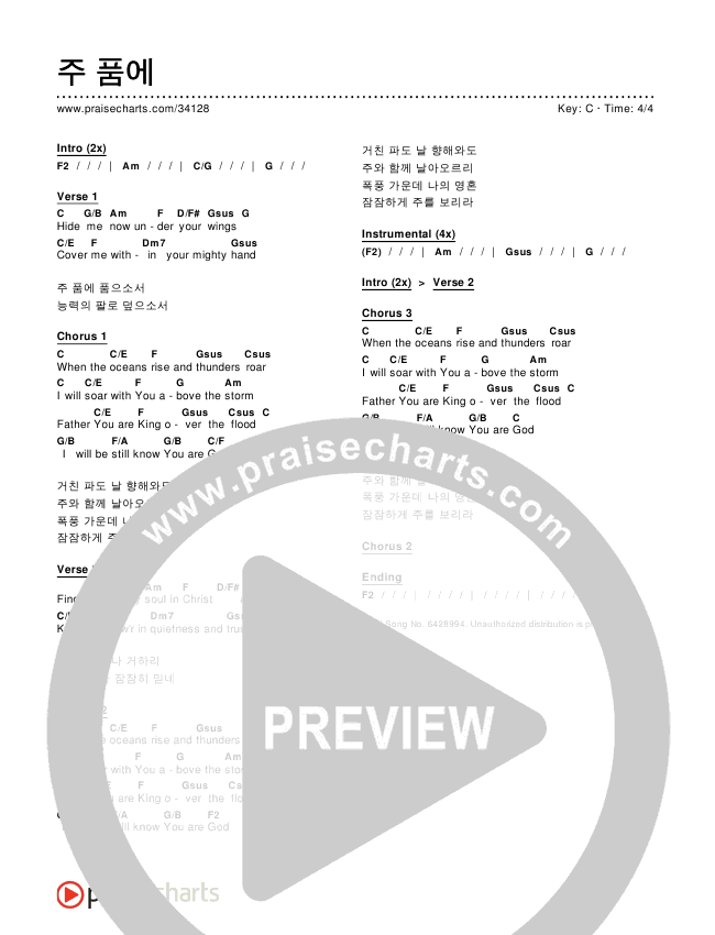 Download the PDF Chord Charts for 주 품에 (Still), from the album Worship Songs In Korean.