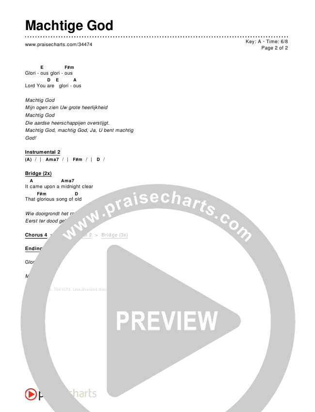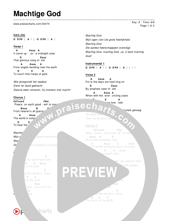 Download the PDF Chord Charts for Machtige God, from the album Worship Songs In Dutch.