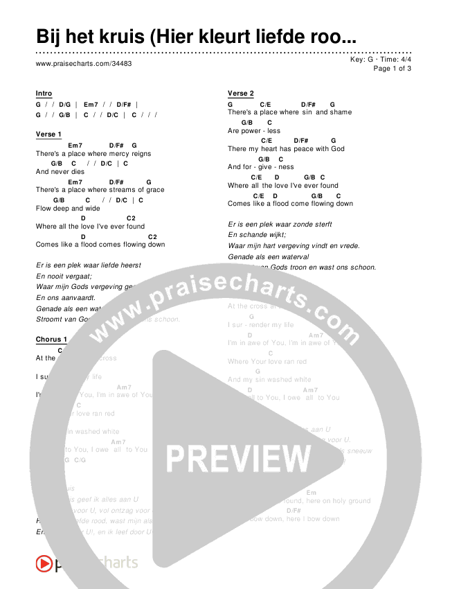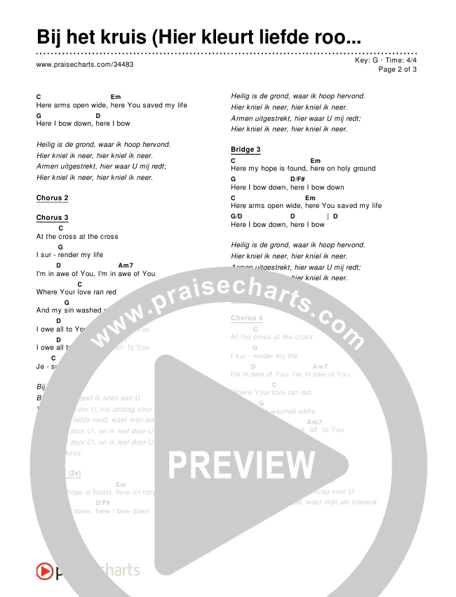 Download the PDF Chord Charts for Bij het kruis (Hier kleurt liefde rood), from the album Worship Songs In Dutch.