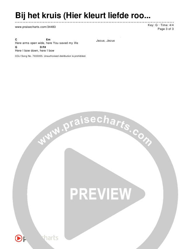 Download the PDF Chord Charts for Bij het kruis (Hier kleurt liefde rood), from the album Worship Songs In Dutch.