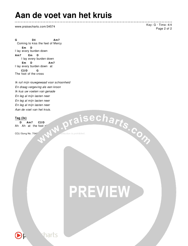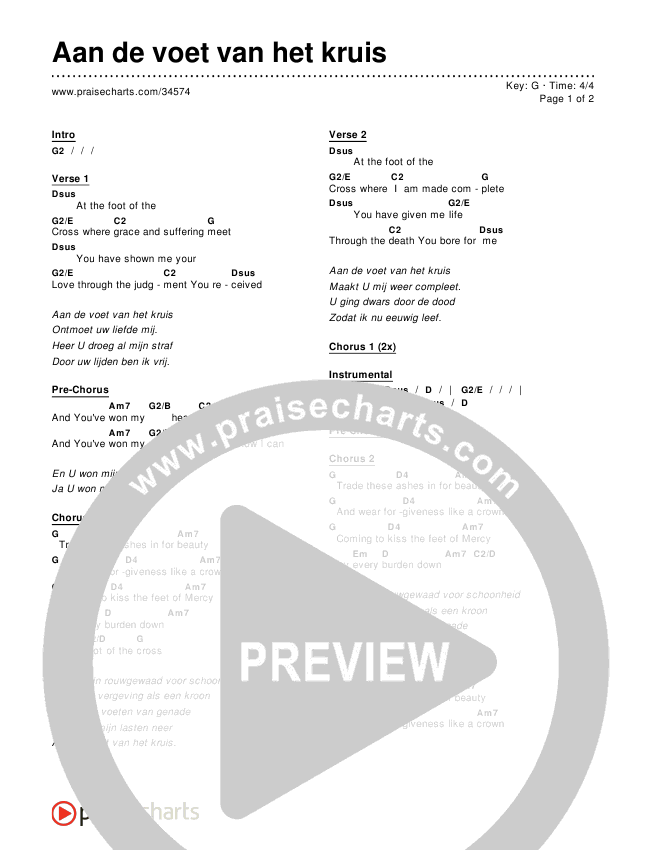 Download the PDF Chord Charts for Aan de voet van het kruis (At The Foot Of The Cross), from the album Worship Songs In Dutch.