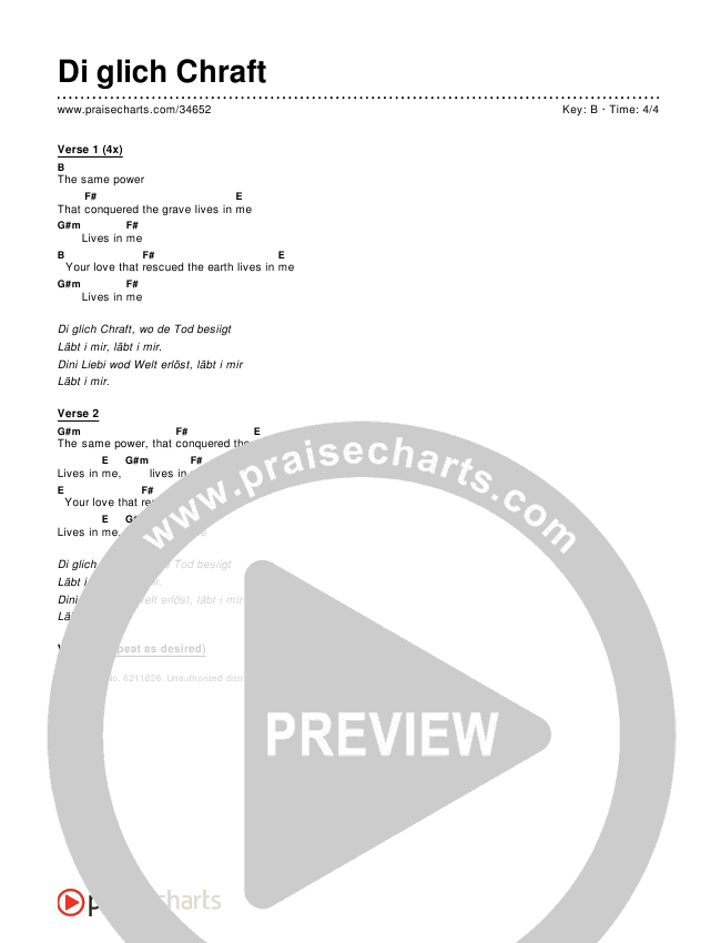Download the PDF Chord Charts for Di glich Chraft, from the album Deutsch Lobgesänge.