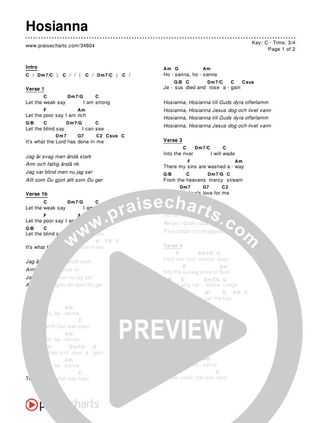 Download the PDF Chord Charts for Hosianna (What The Lord Has Done In Me), from the album Worship Songs In Swedish.
