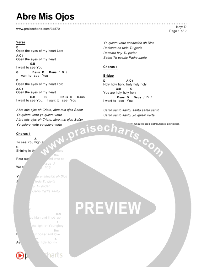 Download the PDF Chord Charts for Abre Mis Ojos (Open The Eyes Of My Heart), from the album Canciones de Adoración Español.