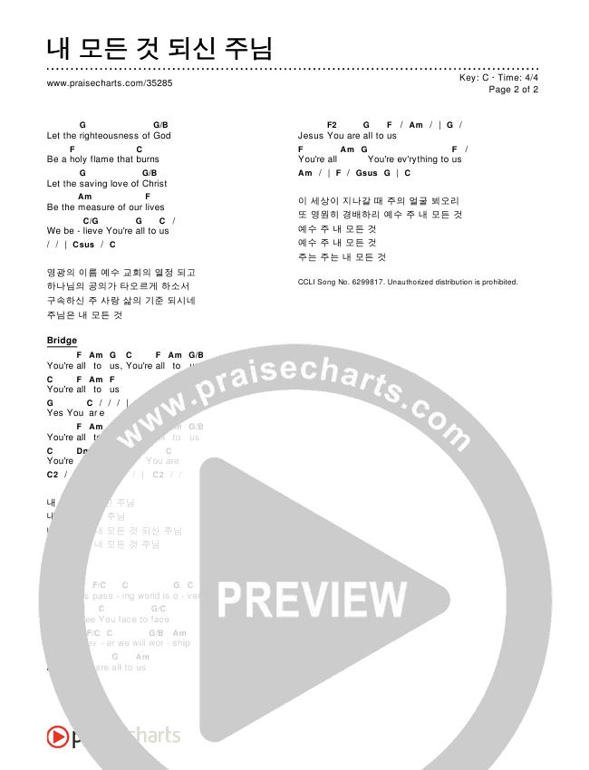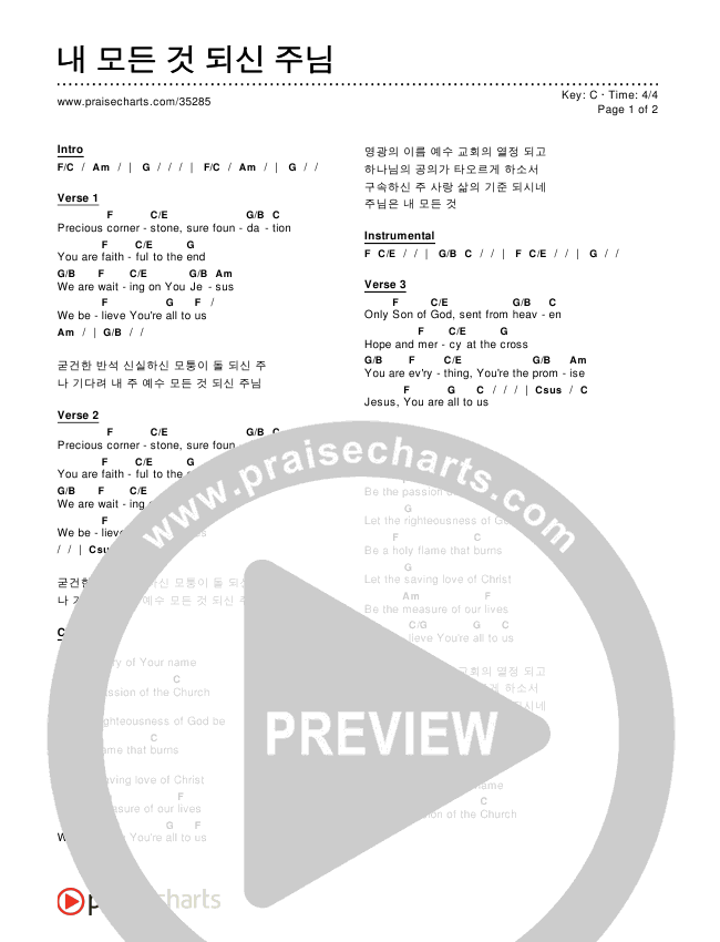 Download the PDF Chord Charts for 내 모든 것 되신 주님, from the album Worship Songs In Korean.