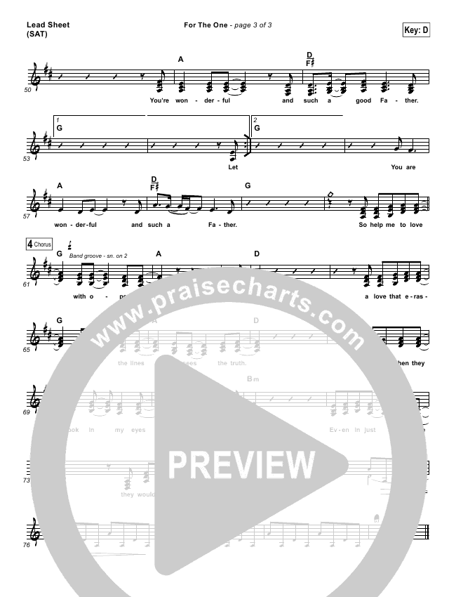Download the sheet music for For The One by Brian Johnson / Jenn Johnson, from the album After All These Years. This song was arranged by Dustin Loehrs / Daniel Galbraith in the key of D, Eb.